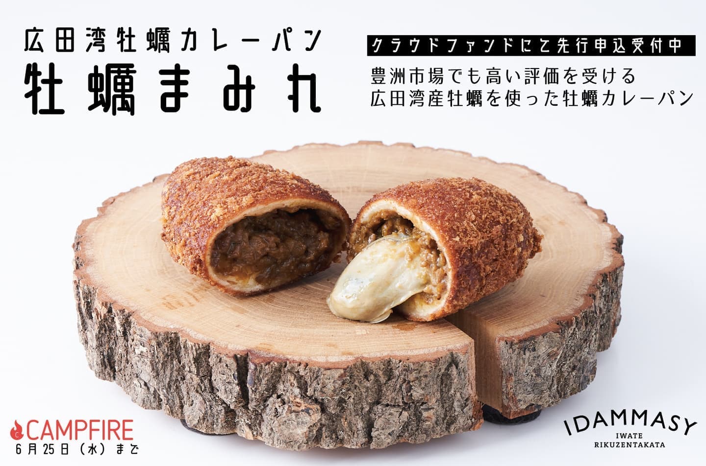 豊洲市場でも高い評価をうける広田湾産牡蠣を贅沢に使用したオイスターソースと牡蠣出汁で煮込んだカレールーと低温調理のコンフィ牡蠣を使った牡蠣カレーパンの先行提供です。